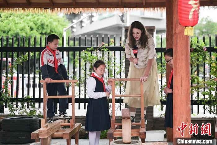 28歲的宋瀟佩來自波蘭,是重慶大學(xué)的一名留學(xué)生,這是她在中國度過的第一個(gè)端午節(jié)。為學(xué)習(xí)端午傳統(tǒng)文化習(xí)俗,宋瀟佩特地穿上中式服裝,走進(jìn)重慶市艾草文化研究指導(dǎo)基地——重慶兩江新區(qū)嘉木小學(xué)校,以艾草為媒,和孩子們一同學(xué)習(xí)“艾+”學(xué)科生活融創(chuàng)教育課程,感受傳統(tǒng)文化在節(jié)日里煥發(fā)的新生機(jī)。
