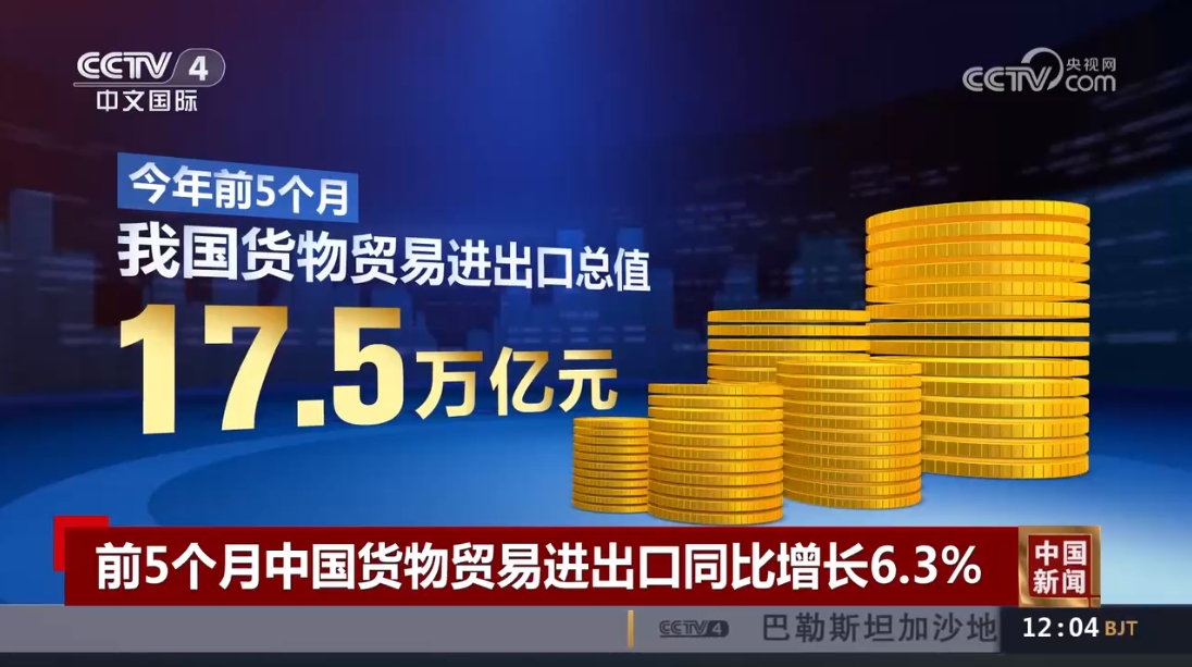 今天(6月7日),海關(guān)總署公布,今年前5個月,中國貨物貿(mào)易進出口同比增長達6.3%。今年以來,中國外貿(mào)向好的勢頭不斷鞏固。