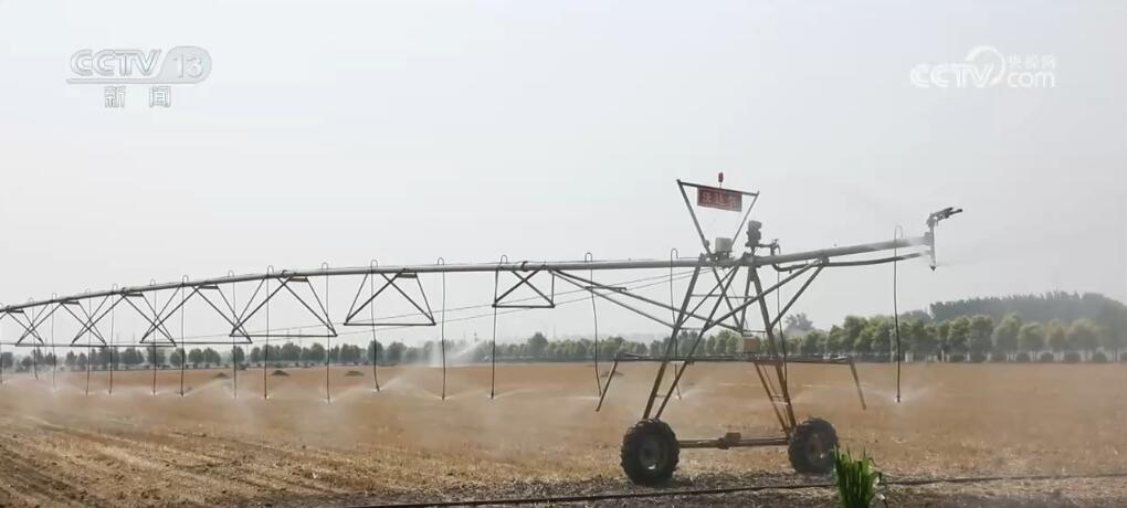 這是位于鄲城縣周口國家農(nóng)業(yè)高新技術(shù)產(chǎn)業(yè)示范區(qū)的一處農(nóng)田,多臺機械在進行噴灌作業(yè)。農(nóng)技人員現(xiàn)場指導農(nóng)戶根據(jù)土壤墑情等科學灌溉,提高芽苗存活率。