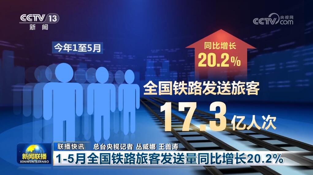 1—5月全國(guó)鐵路旅客發(fā)送量同比增長(zhǎng)20.2%
