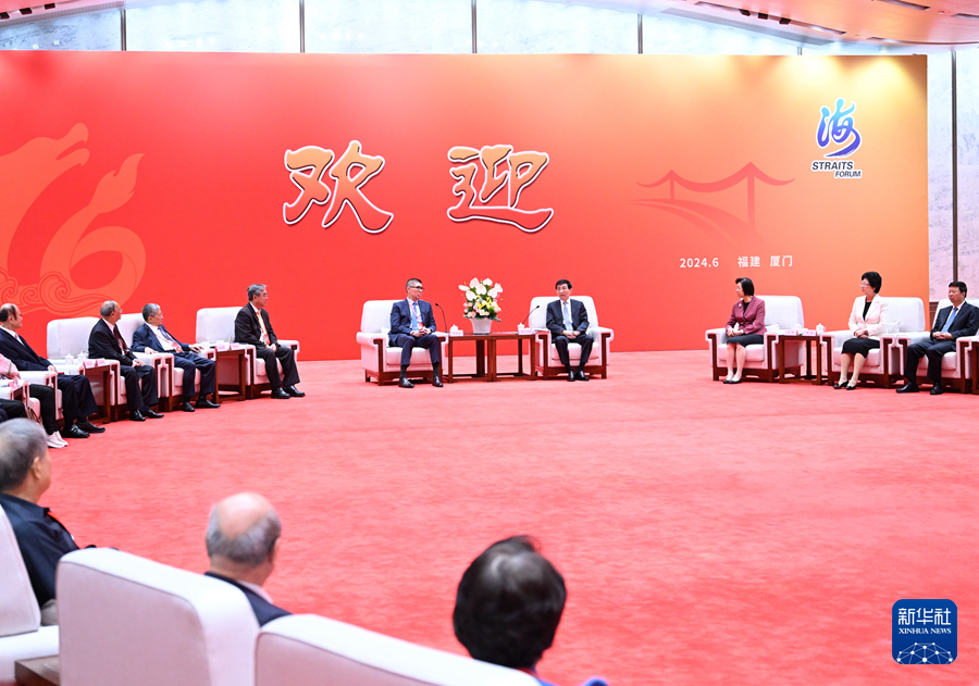 6月15日,第十六屆海峽論壇大會(huì)在廈門舉行。中共中央政治局常委、全國(guó)政協(xié)主席王滬寧出席并致辭。這是大會(huì)開(kāi)始前,王滬寧會(huì)見(jiàn)參加論壇的臺(tái)灣嘉賓代表。新華社記者 申宏 攝