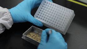 在湖南長沙的岳麓山種業(yè)創(chuàng)新中心,分子育種實(shí)驗(yàn)室研究員李樂正在把脫殼的水稻種子放進(jìn)樣品盤里,隨后將樣品放置在全自動(dòng)移液工作站上,進(jìn)行樣品DNA的提取。該樣品是一份田間試驗(yàn)的低鎘水稻種子,這是岳麓山種業(yè)創(chuàng)新中心受種業(yè)企業(yè)委托選育的品種。