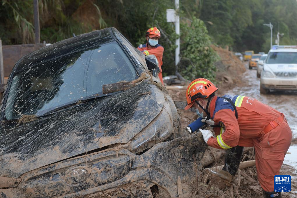 救援人員在廣東省梅州市平遠縣泗水鎮(zhèn)開展救援工作(6月20日攝)。新華社記者 盧漢欣 攝