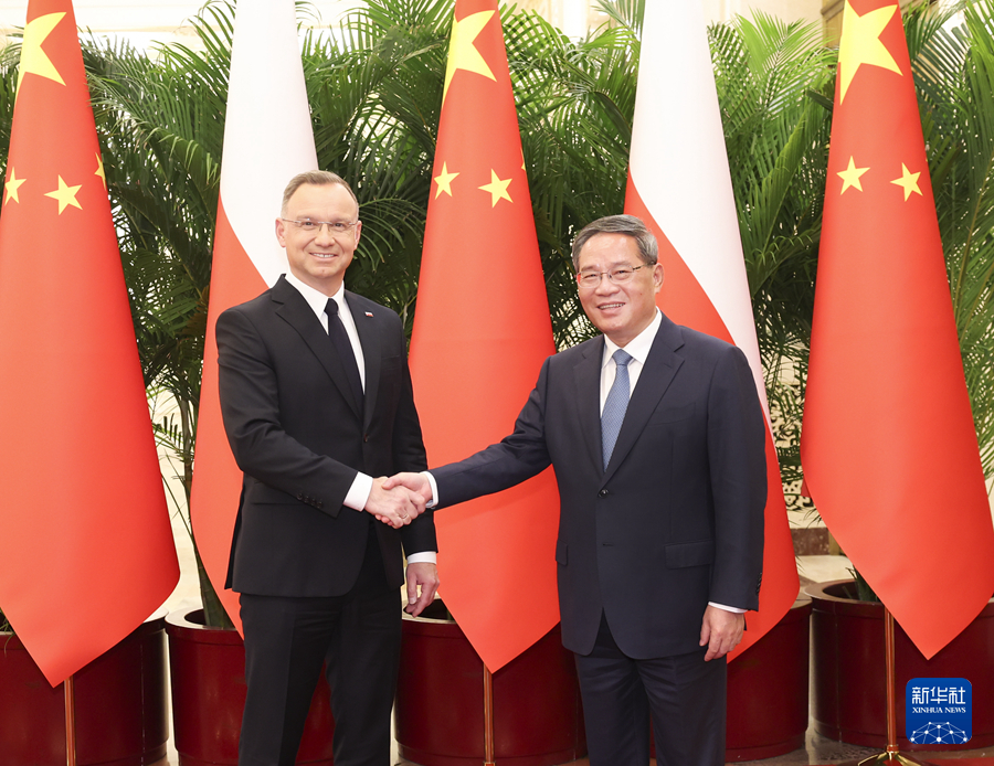 國務(wù)院總理李強6月24日上午在北京人民大會堂會見來華進行國事訪問的波蘭總統(tǒng)杜達。