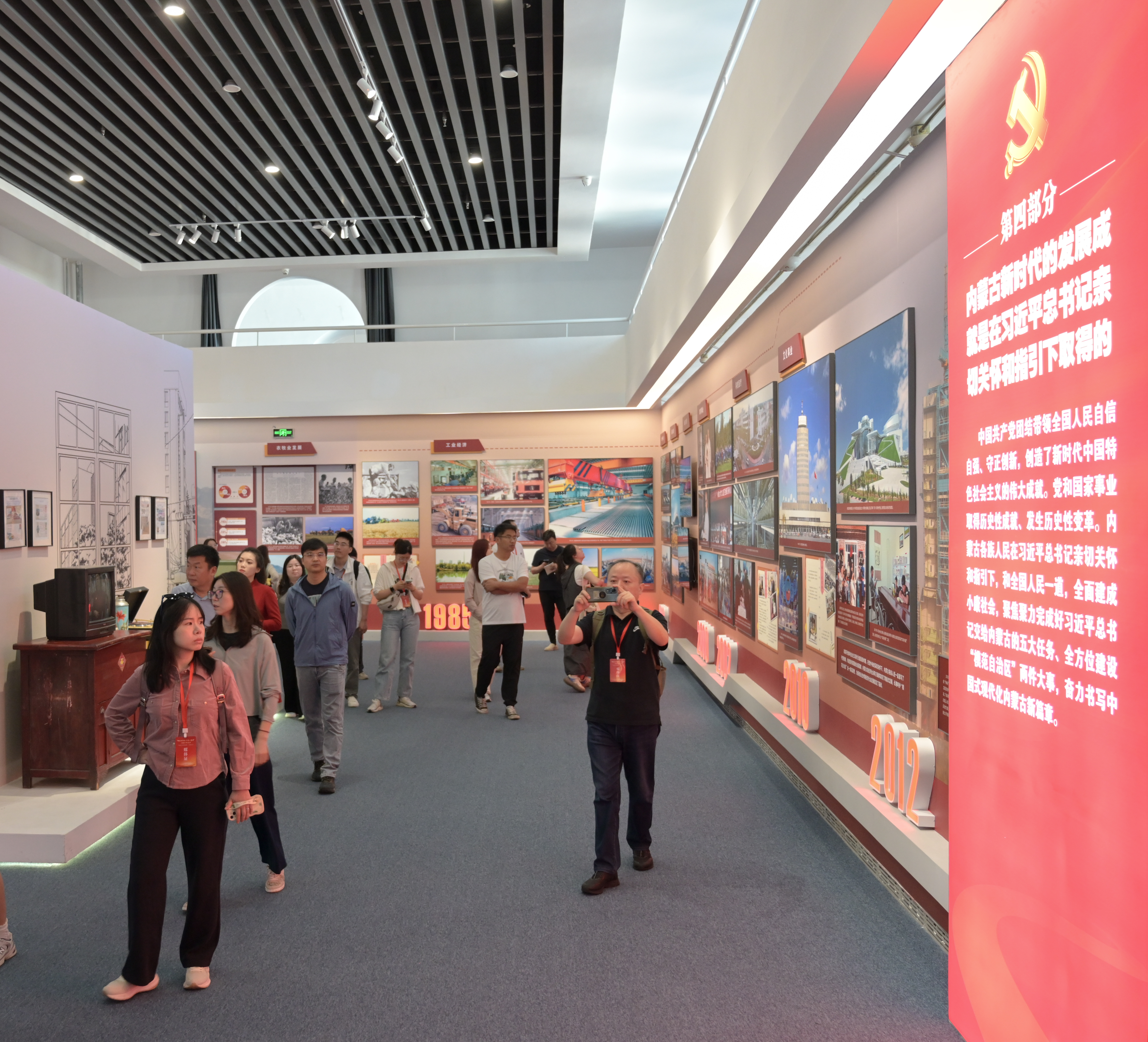 采訪團(tuán)參觀“感黨恩、聽(tīng)黨話、跟黨走”主題展。