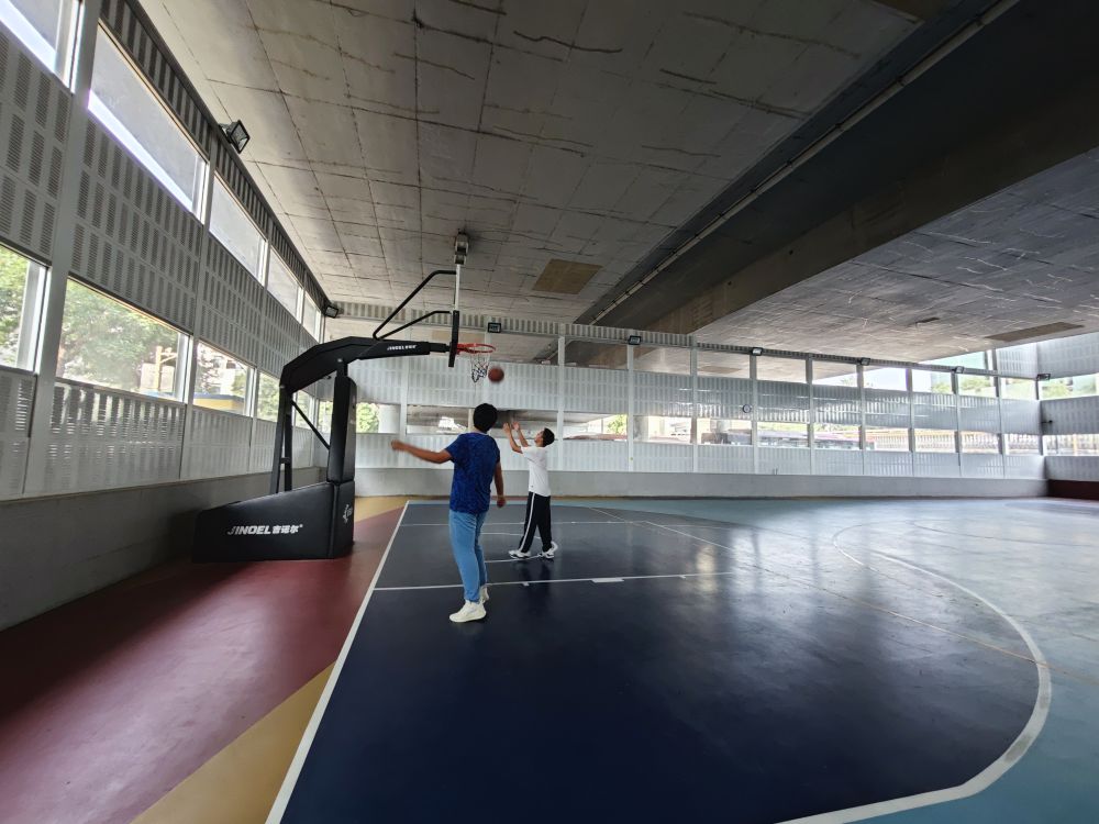 中學(xué)生在北京西城區(qū)天寧寺橋下空間籃球場運(yùn)動(dòng)。 新華社記者陳旭 攝
