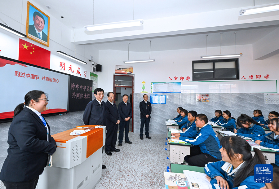 7月1日至3日,中共中央政治局常委、全國政協(xié)主席王滬寧在四川甘孜、阿壩調(diào)研。這是7月3日王滬寧在阿壩縣中學了解開展愛國主義教育和民族團結(jié)進步教育情況。新華社記者 饒愛民 攝