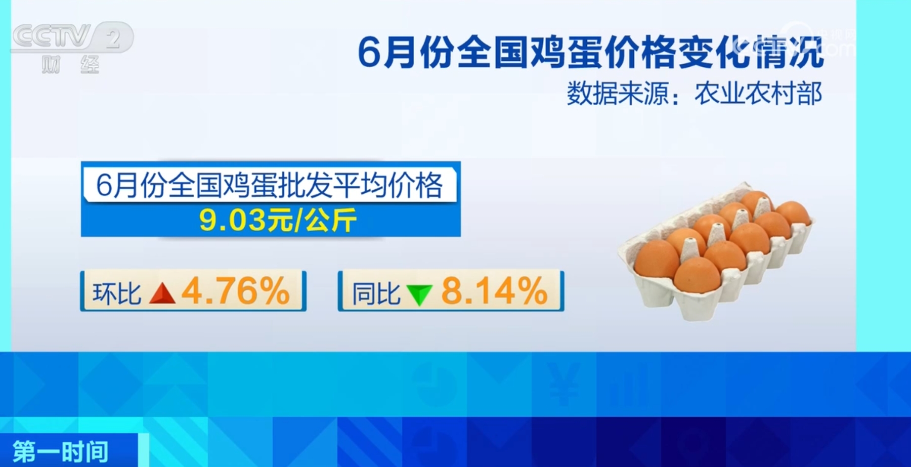6月份全國(guó)雞蛋價(jià)格環(huán)比上漲4.76%