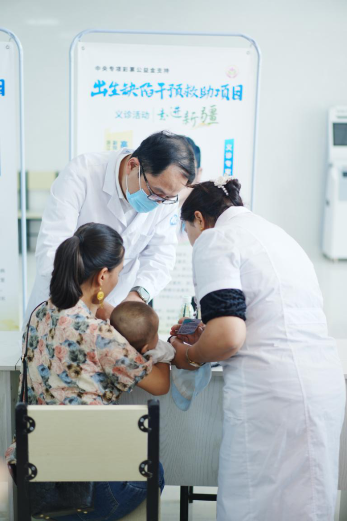 2023年8月,新疆和田縣人民醫(yī)院,專家正在為當地的出生缺陷患兒義診。(中國出生缺陷干預救助基金會供圖)