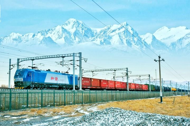 龍門吊快速移動抓取、火車汽笛聲不時響起……在烏魯木齊國際陸港區(qū),一列列中歐班列在裝載完畢后,一路馳騁向西行。