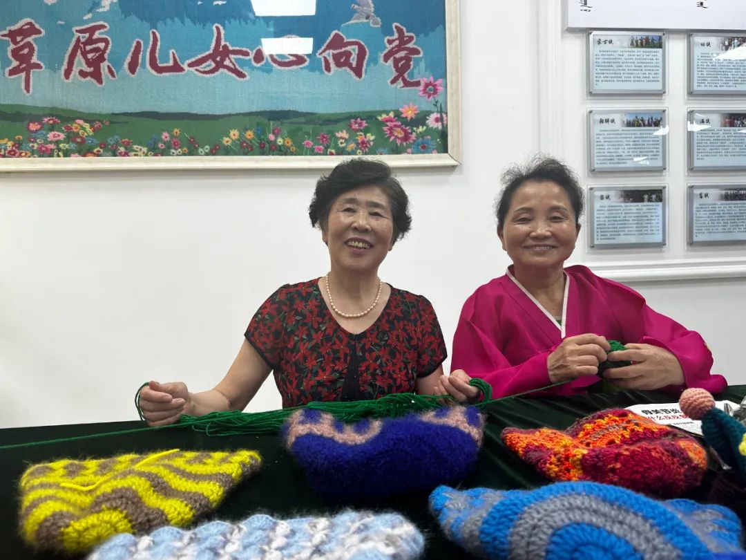 民族工藝傳承區(qū)里,志愿者高娃帶領(lǐng)圍坐桌前的“同學(xué)們”編織各類毛線織品,絲線繡出來(lái)的花鳥圖案引起記者們的注意。朝鮮族居民李貞子和漢族居民劉海燕是“老搭檔”,屬于“零基礎(chǔ)”學(xué)員的她們連續(xù)多年堅(jiān)持每周上課,即便沒有課程也會(huì)來(lái)活動(dòng)中心相互切磋?,F(xiàn)在,課堂上教過(guò)的各式民族工藝織品,二人都能信手拈來(lái)。