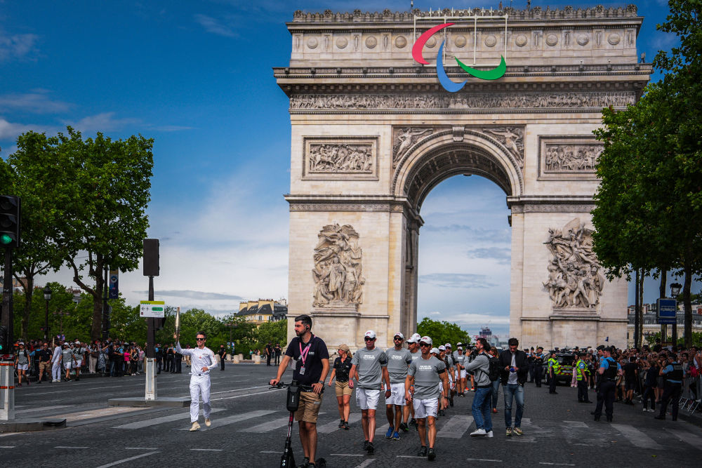 7月15日,奧運(yùn)會(huì)火炬在巴黎傳遞。新華社記者 許暢 攝