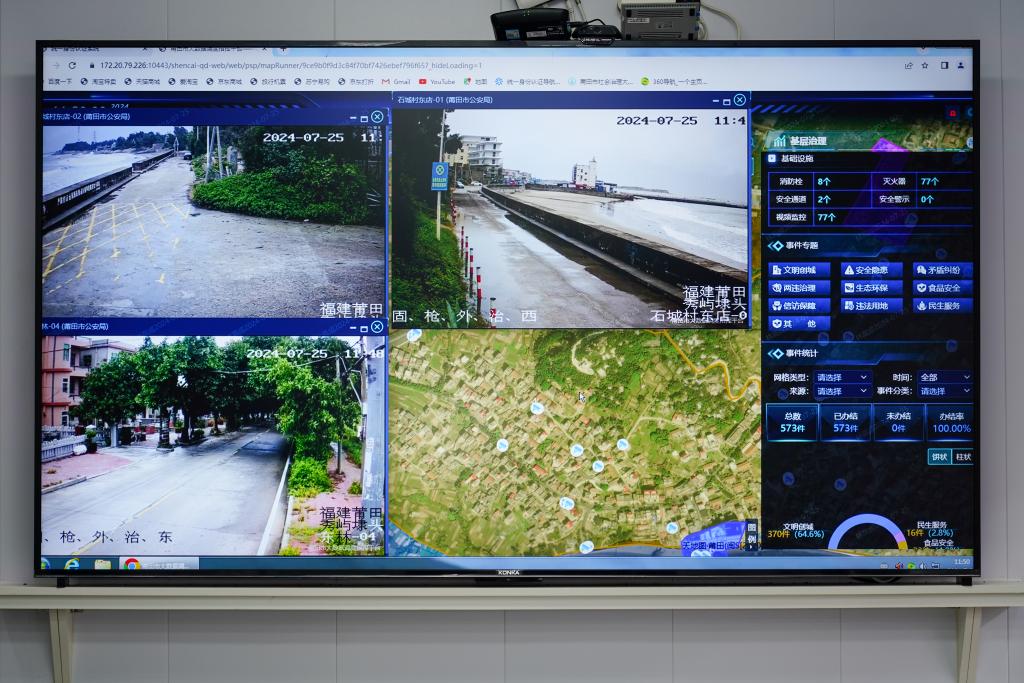 25日中午,莆田市秀嶼區(qū)埭頭鎮(zhèn)石城村數(shù)字平臺顯示的實(shí)時視頻信息。肖和勇 攝