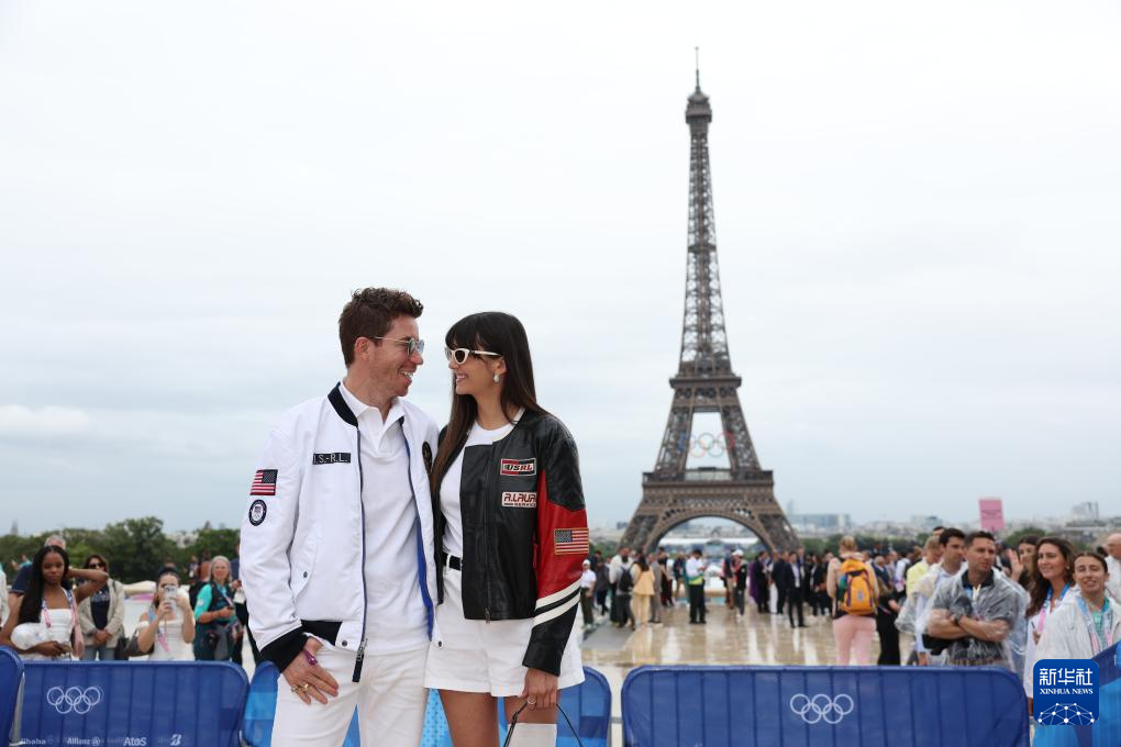 7月26日,中國體育代表團(tuán)成員抵達(dá)特羅卡德羅廣場。新華社記者 許暢 攝