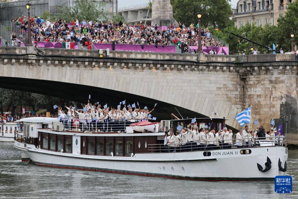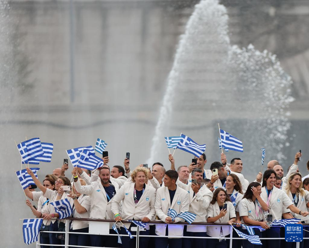 7月26日,希臘體育代表團(tuán)在開幕式上。新華社記者 萬象 攝