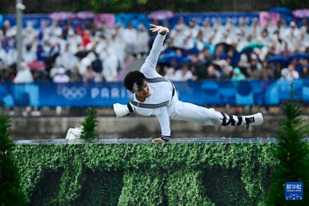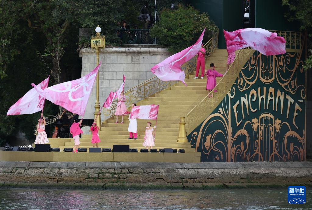 7月26日,演員在開幕式現(xiàn)場表演。新華社發(fā)(POOL照片/克洛達(dá)赫·基爾科因)