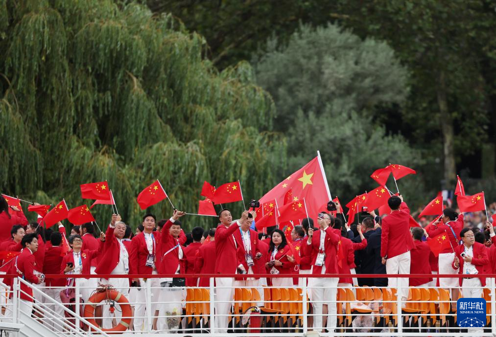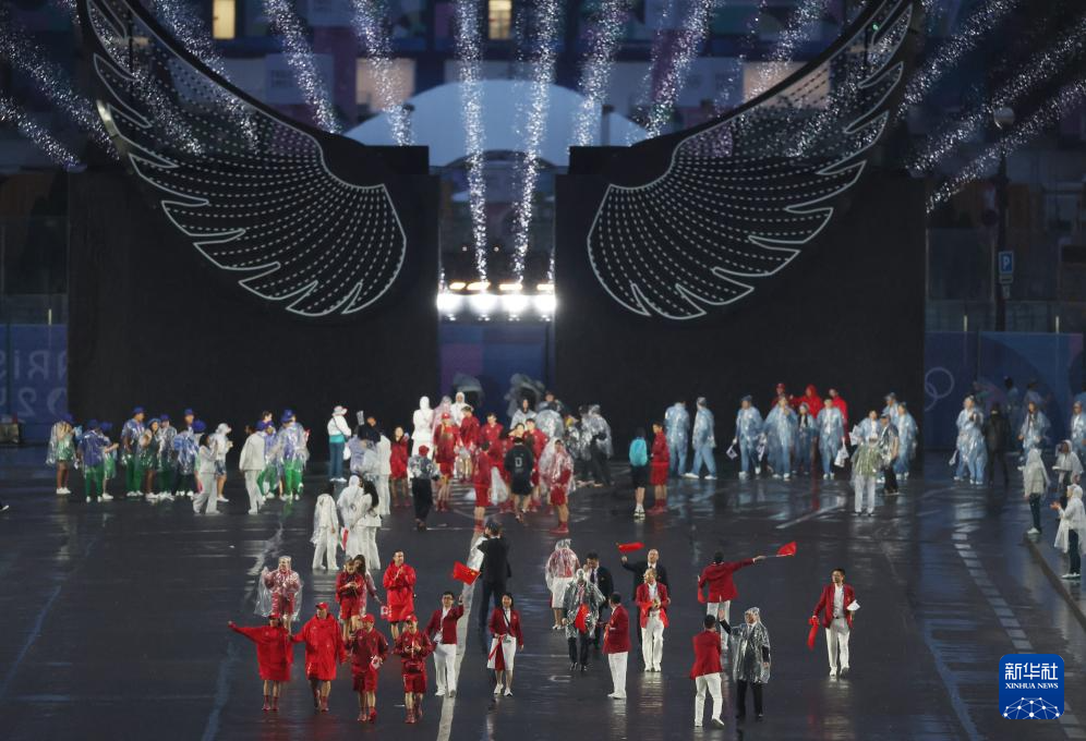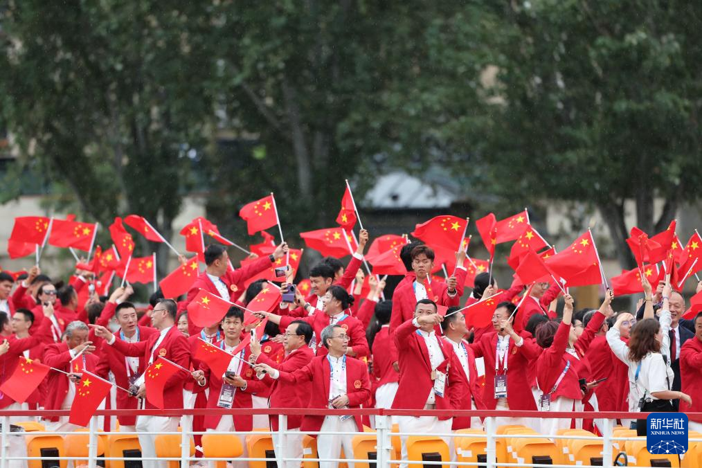 7月26日,中國體育代表團(tuán)在開幕式上。新華社記者 萬象 攝