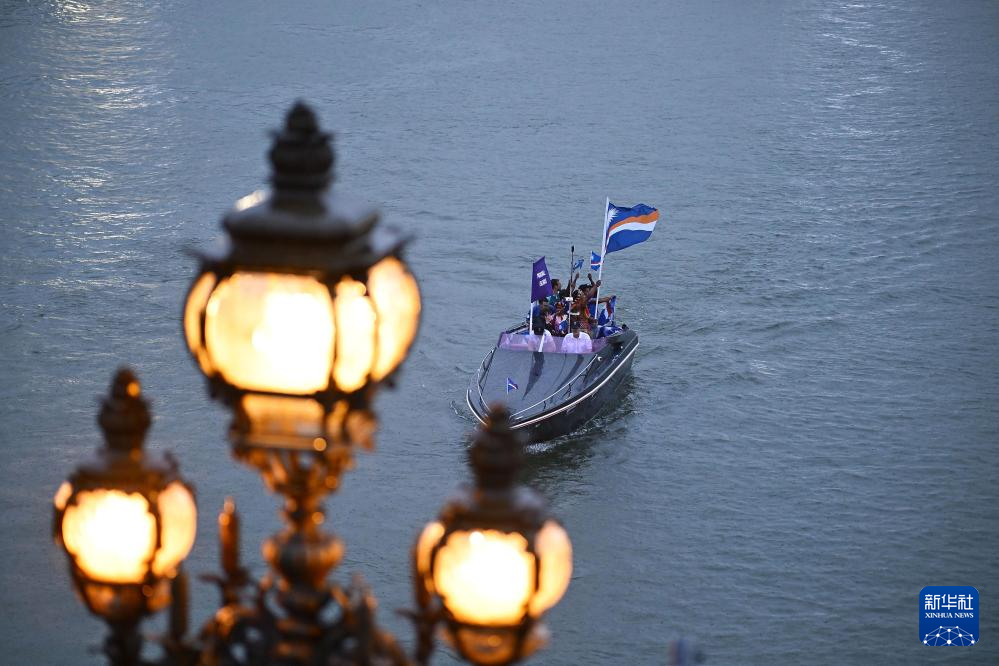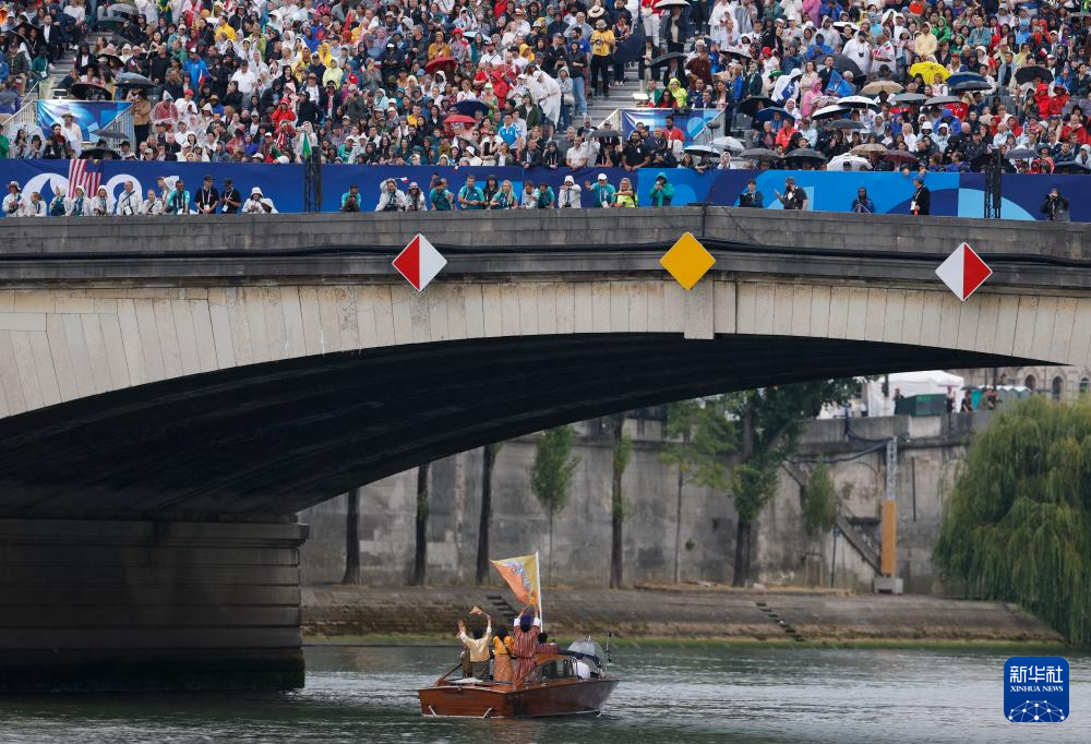 7月26日,各代表團(tuán)成員在開幕式上抵達(dá)耶拿橋。新華社發(fā)(POOL照片/盧多維克·馬林)
