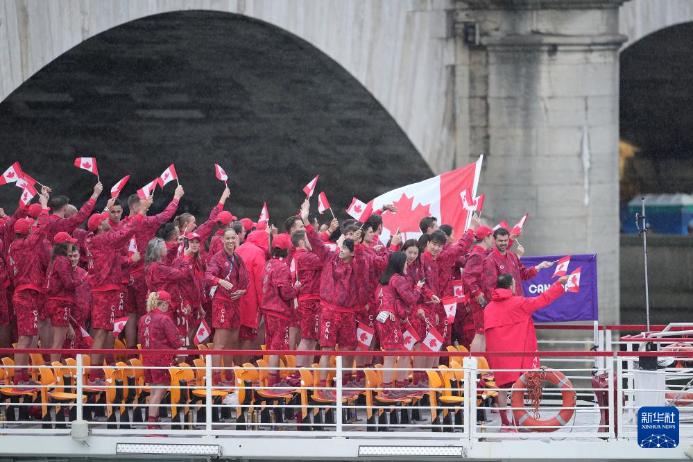 7月26日,加拿大體育代表團(tuán)(前)在開幕式上。新華社記者 任正來 攝