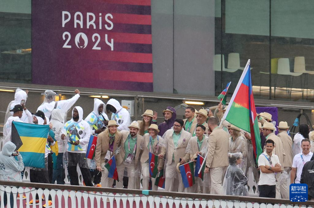 7月26日,各體育代表團(tuán)在開幕式上。新華社發(fā)(POOL照片/里卡多·毛佐蘭)