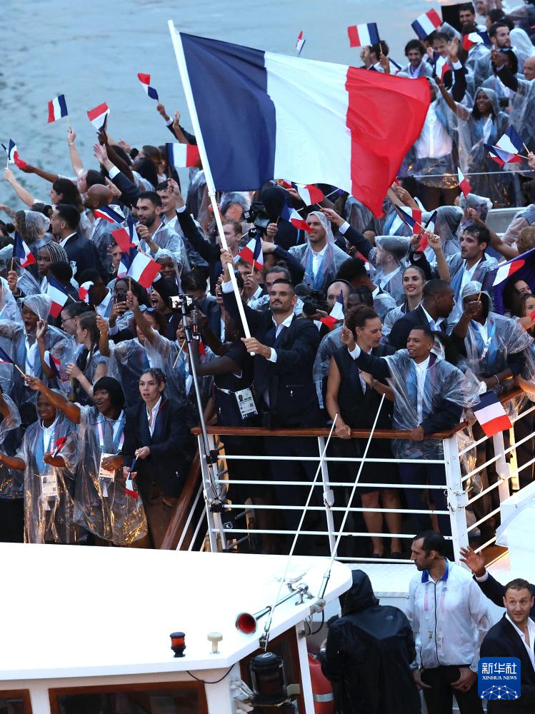 7月26日,法國體育代表團(tuán)在開幕式上。新華社記者 李鋼 攝pagebreak