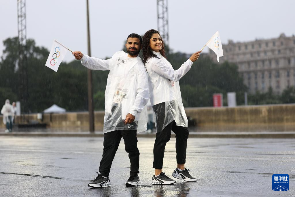 7月26日,中國體育代表團(tuán)成員在開幕式前。新華社記者 曹燦 攝pagebreak