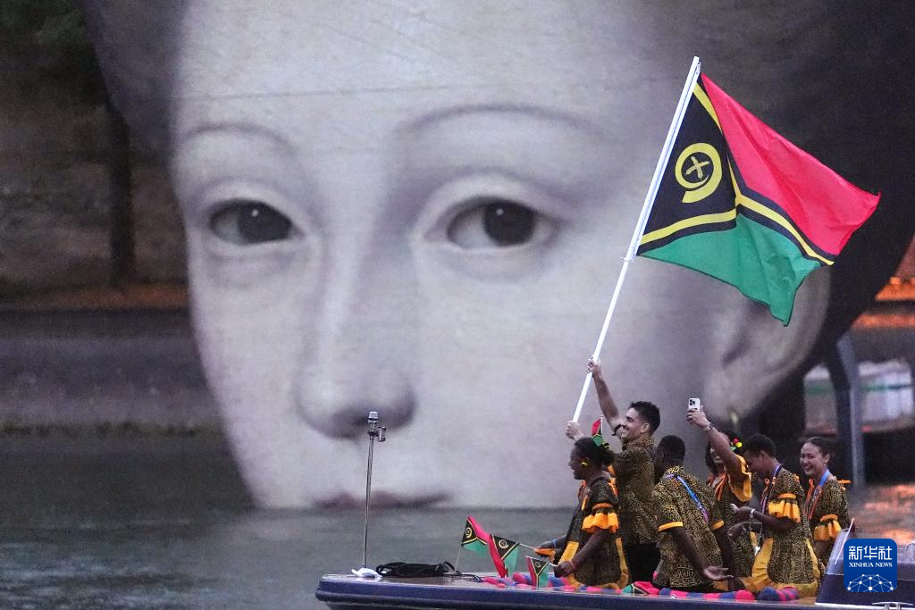 7月26日,瓦努阿圖體育代表團(tuán)在開幕式上。新華社記者 萬象 攝