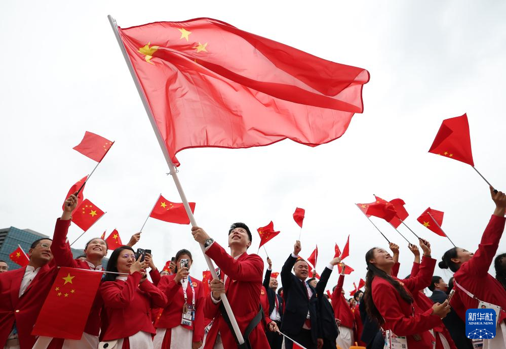 7月26日,中國體育代表團(tuán)在開幕式上。新華社記者 郭昱 攝
