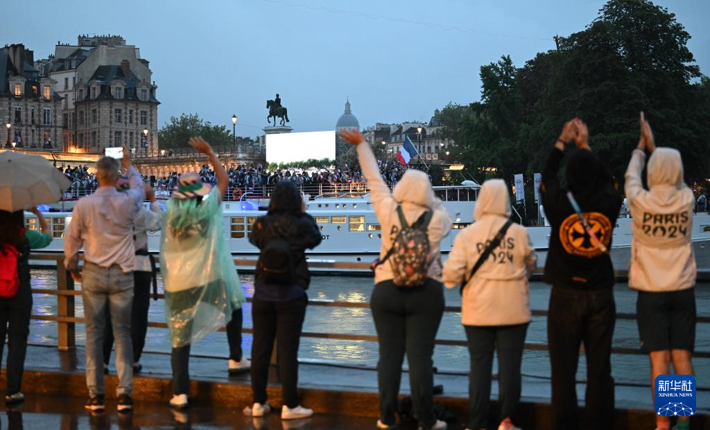 7月26日,觀眾在塞納河邊觀看開幕式。新華社記者 任正來 攝