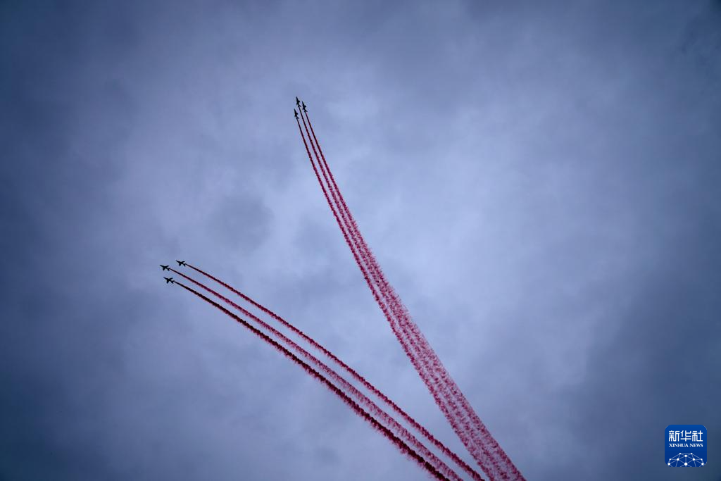 7月26日,飛機(jī)在開幕式上表演。新華社發(fā)(POOL照片/克洛達(dá)赫·基爾科因)pagebreak