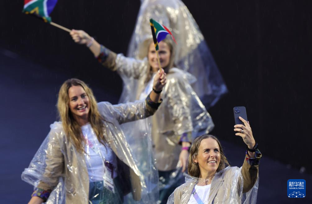7月26日,南非體育代表團(tuán)進(jìn)入特羅卡德羅廣場。新華社記者 沈伯韓 攝pagebreak