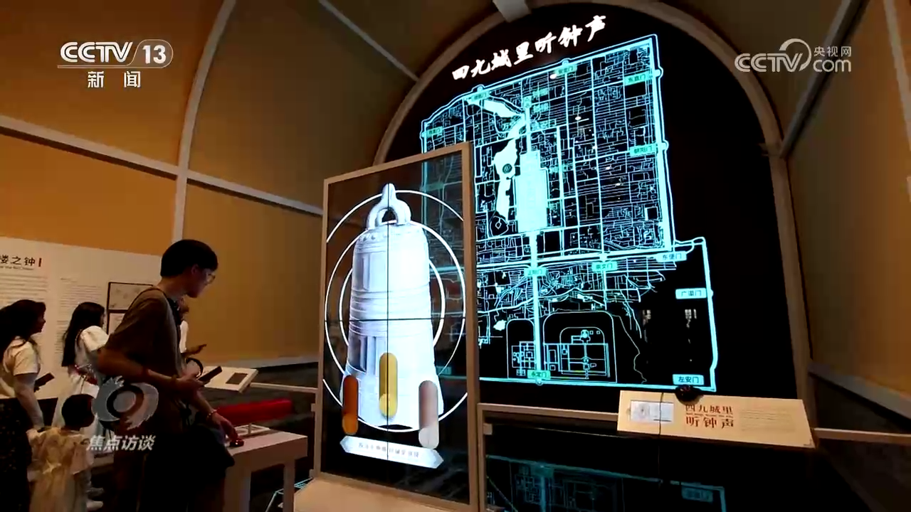 北京市東城區(qū)文化和旅游局鐘鼓樓文物保管所業(yè)務部職員王帥奇:“自從鼓樓一層推出了時間的故事主題展,受到大家的歡迎,更多年輕的家長帶著青少年,包括大學生,來到鼓樓一層看數(shù)字展,感受老祖宗通過時間獲得的智慧?!?/p>