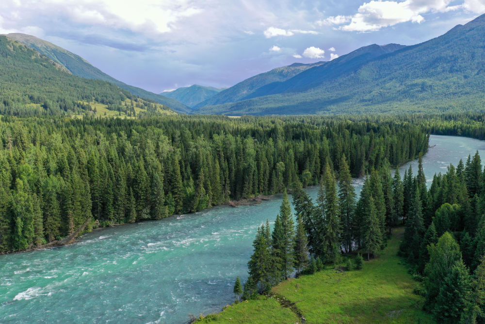 7月22日拍攝的新疆阿勒泰地區(qū)喀納斯景區(qū)(無(wú)人機(jī)照片)。
