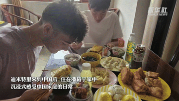 今年暑假剛開始,迪米特里就迫不及待地隨團來到中國,住在潘韜宇家中,沉浸式感受中國家庭的日常。從品嘗特色小吃、共同學做中國菜,到一起打籃球、打游戲,線下的深入接觸讓兩人的友誼進一步升溫。