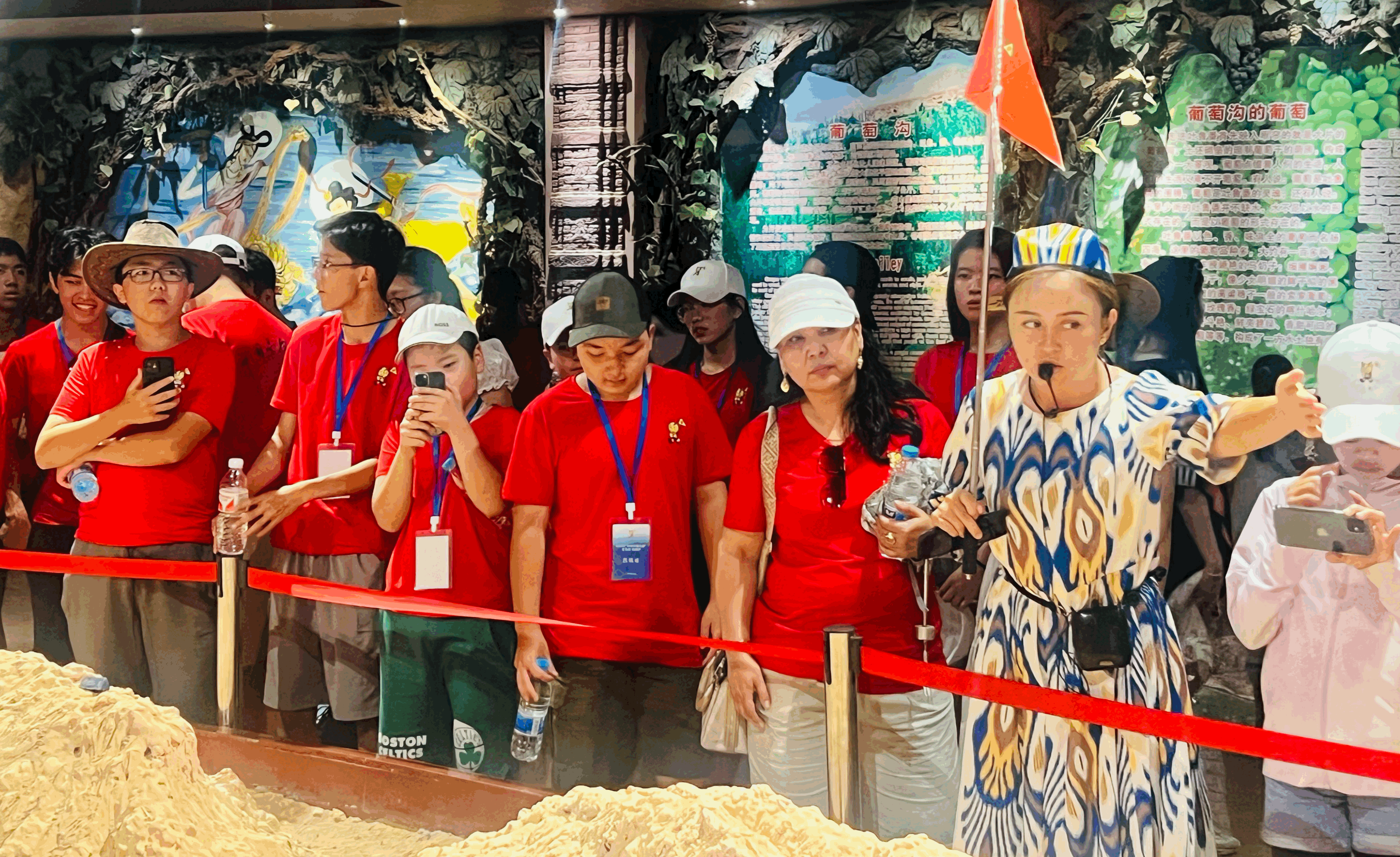 7月23日,在吐魯番市高昌區(qū)火焰山景區(qū),營員們跟隨解說員了解火焰山的地形地貌。天山網(wǎng)-新疆日報記者 司路路攝