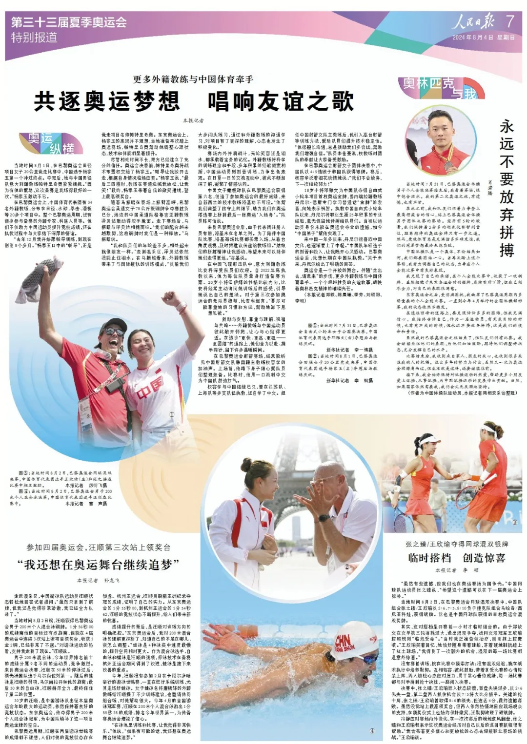 鼓勵與安慰、尊重與理解、祝福與共鳴……外籍教練與中國運動員彼此敞開懷抱,讓心與心貼得更近。在追求“更快、更高、更強——更團結(jié)”的道路上,他們?nèi)σ愿啊y手同行,留下許多溫暖瞬間。