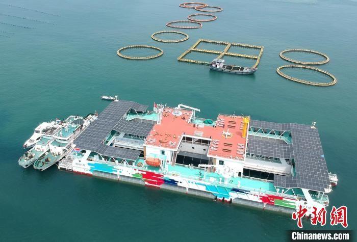 圖為航拍“閩投1號(hào)”深海智慧漁旅平臺(tái)。(無人機(jī)照片)中新社記者 呂明 攝
