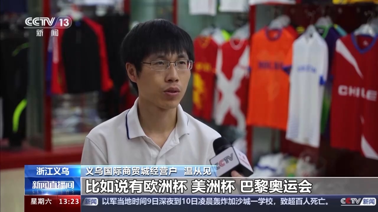 溫從見(jiàn)是義烏國(guó)際商貿(mào)城的一位經(jīng)營(yíng)戶(hù),從事球衣服裝行業(yè)已經(jīng)17年,經(jīng)歷了多輪體育賽事的備貨、生產(chǎn)和銷(xiāo)售。得益于敏銳的反應(yīng)力和良好的適應(yīng)力,溫從見(jiàn)在今年大賽期間收益頗豐。