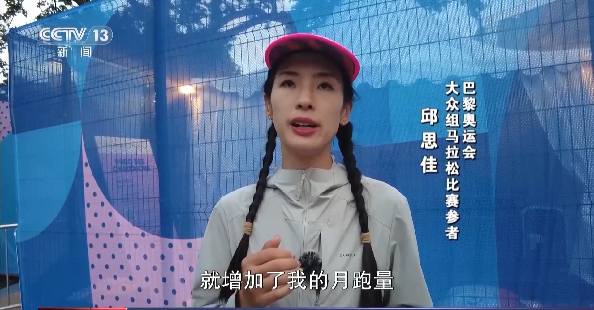 巴黎奧運會大眾組馬拉松比賽參賽者 邱思佳:我之前每個月的月跑量可能都在100公里左右,我在報名了這個比賽后,我就更加有動力,就增加了月跑量,能夠達到200公里每月。