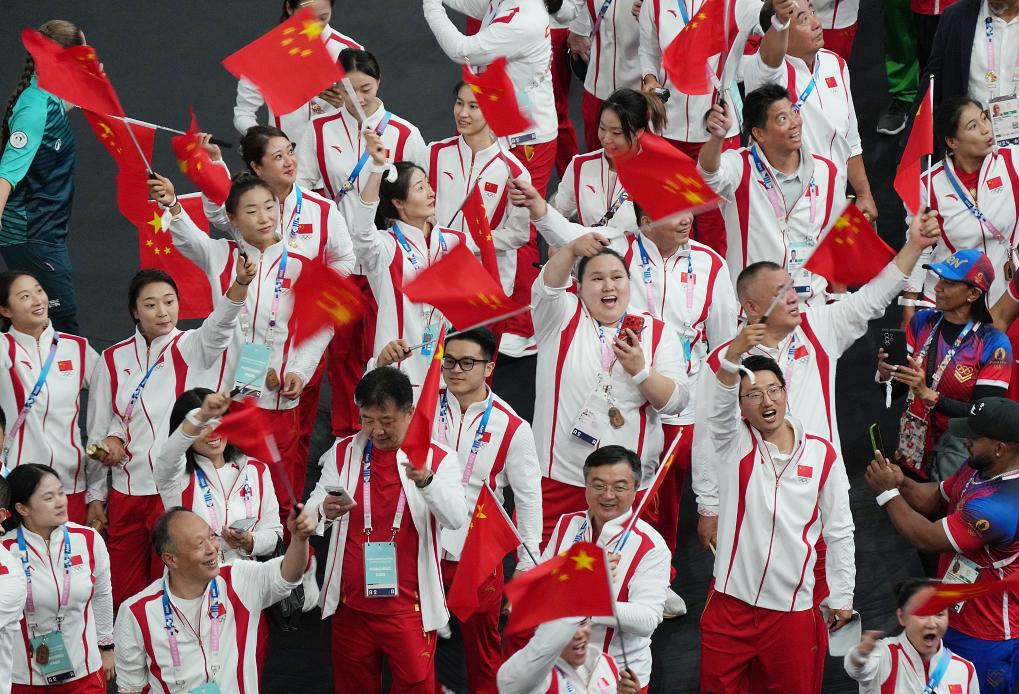 8月11日,中國體育代表團(tuán)在閉幕式上入場。新華社記者 鄭煥松 攝