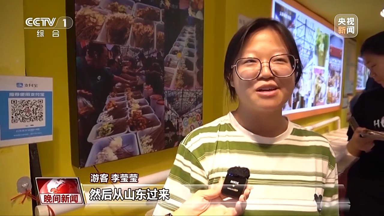 游客 李瑩瑩:之前在網(wǎng)上刷到過,從山東過來,也嘗嘗當?shù)氐囊恍┨厣?,跟我們那邊還是有文化的差異,一個很新奇的體驗。