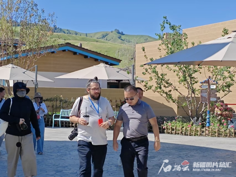 當(dāng)日,車輛剛抵達(dá)那拉提景區(qū)游客集散中心,11位土耳其媒體人士便滿懷激情,紛紛舉起手機(jī)與相機(jī),快門聲此起彼伏,記錄下這初見的驚喜。抬眼遠(yuǎn)眺,看到的是村落里一座座錯(cuò)落有致的院落式,這里是7月初營(yíng)業(yè)的那拉提拈花灣哈茵賽民族風(fēng)情度假村。