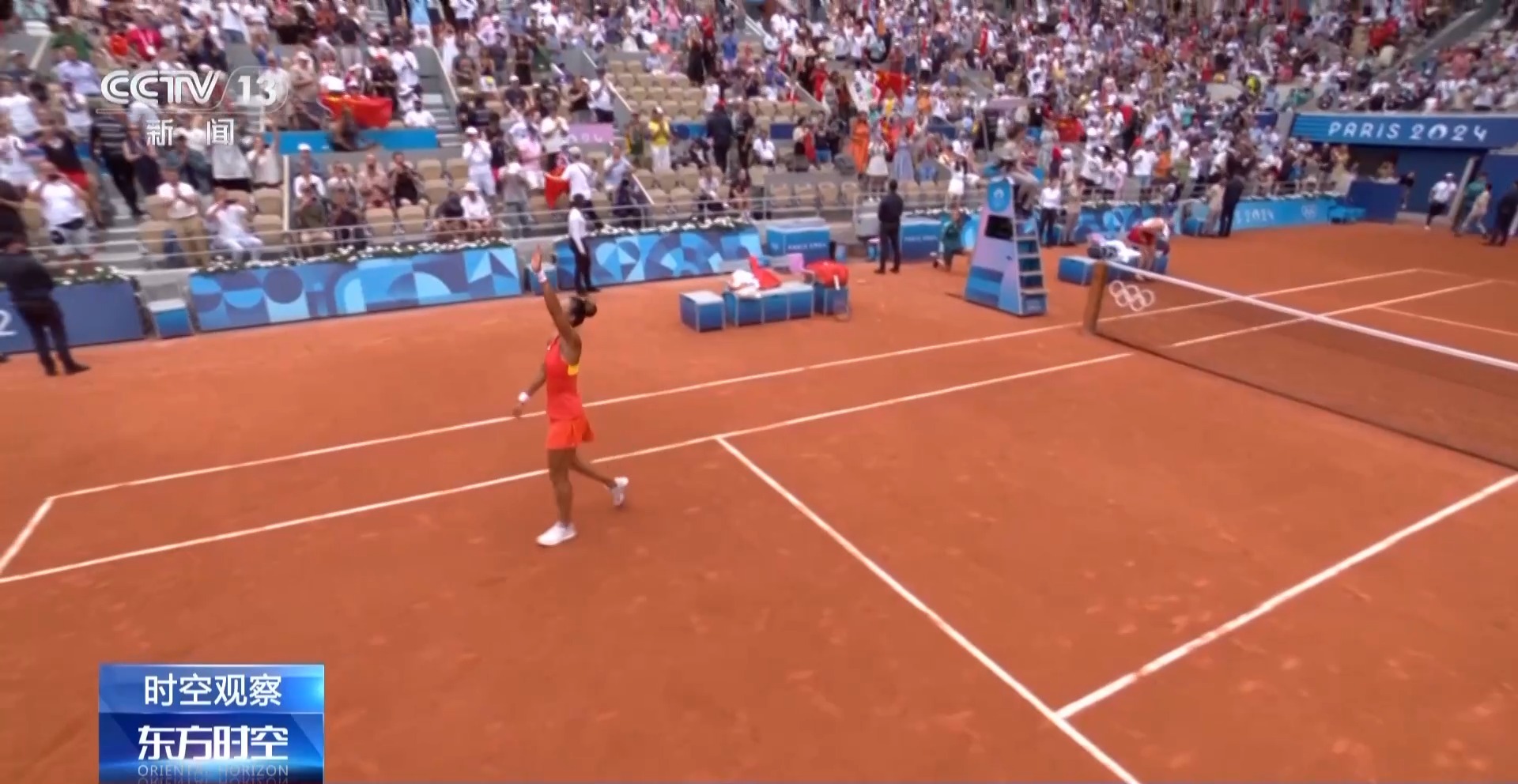 面對連續(xù)六次贏了自己的斯維亞特克,21歲的中國姑娘鄭欽文,為中國贏得了首枚奧運網(wǎng)球單打金牌。她也成為第一位站上該項目奧運會最高領(lǐng)獎臺的亞洲運動員。