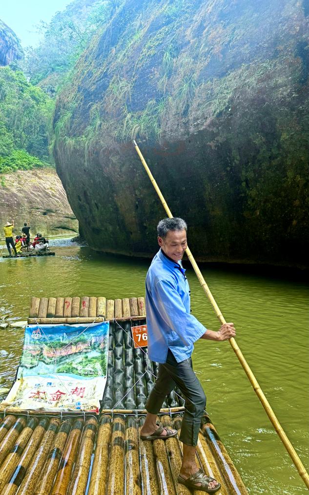 像黃盛騰這樣常年固定的艄公或艄婆,在上清溪景區(qū)共有200多名。暑期以來,旅游熱度快速升溫,高峰期一天需要撐三至四趟。