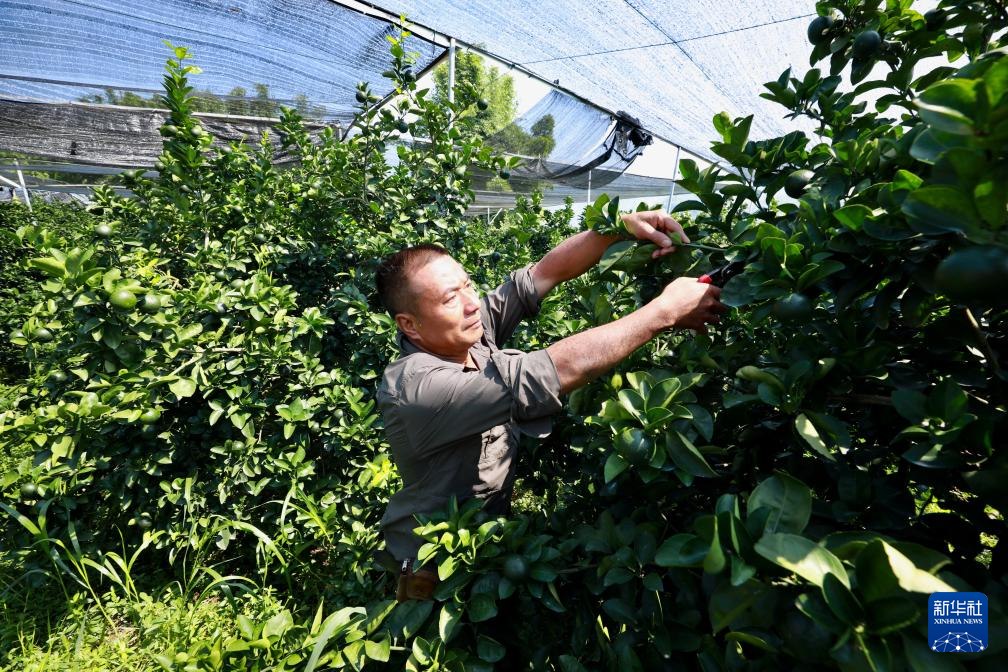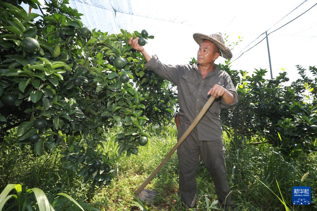 8月12日,福建南平市延平區(qū)爐下鎮(zhèn)斜溪村村民王崇年在護理果園。 新華社記者 姜克紅 攝