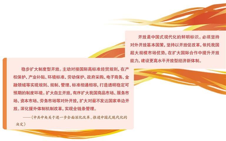 《決定》提出“穩(wěn)步擴大制度型開放”,要求主動對接國際高標準經貿規(guī)則?!稕Q定》作出的一系列重要部署影響廣泛、意義深遠。