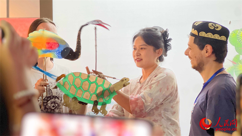 “這是我第一次來新疆,在來之前我很喜歡《吐魯番的葡萄熟了》這首歌,也對新疆充滿了好奇?!痹诓菝佬g(shù)館,俄羅斯翻譯家、現(xiàn)任莫斯科物理技術(shù)學(xué)院中文系副教授羅子毅在皮影戲展示區(qū)駐足觀看并親身體驗了皮影戲的基本技巧?!拔覍W(xué)過表演,也很喜歡歌劇,這趟新疆之行剛開始就能體驗到中國的皮影戲,我對后面的行程充滿了期待?!?/p>