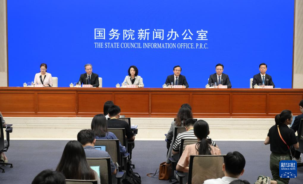 8月16日,國務(wù)院新聞辦公室在北京舉行新聞發(fā)布會,商務(wù)部國際貿(mào)易談判副代表李詠箑、山東省副省長宋軍繼、商務(wù)部國際貿(mào)易經(jīng)濟合作研究院副院長曲維璽、山東省商務(wù)廳廳長陳飛、青島市副市長王波介紹2024年跨國公司領(lǐng)導(dǎo)人青島峰會有關(guān)情況,并答記者問。新華社記者 李賀 攝