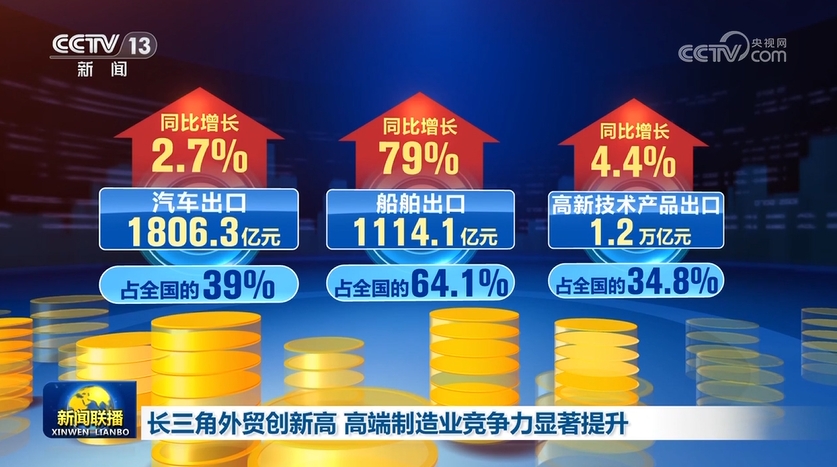 海關最新數(shù)據(jù)顯示,今年前7個月,長三角地區(qū)進出口規(guī)模創(chuàng)歷史新高,汽車、船舶、數(shù)控機床等產(chǎn)品出口亮眼,長三角地區(qū)高端制造業(yè)國際競爭力加速提升。
