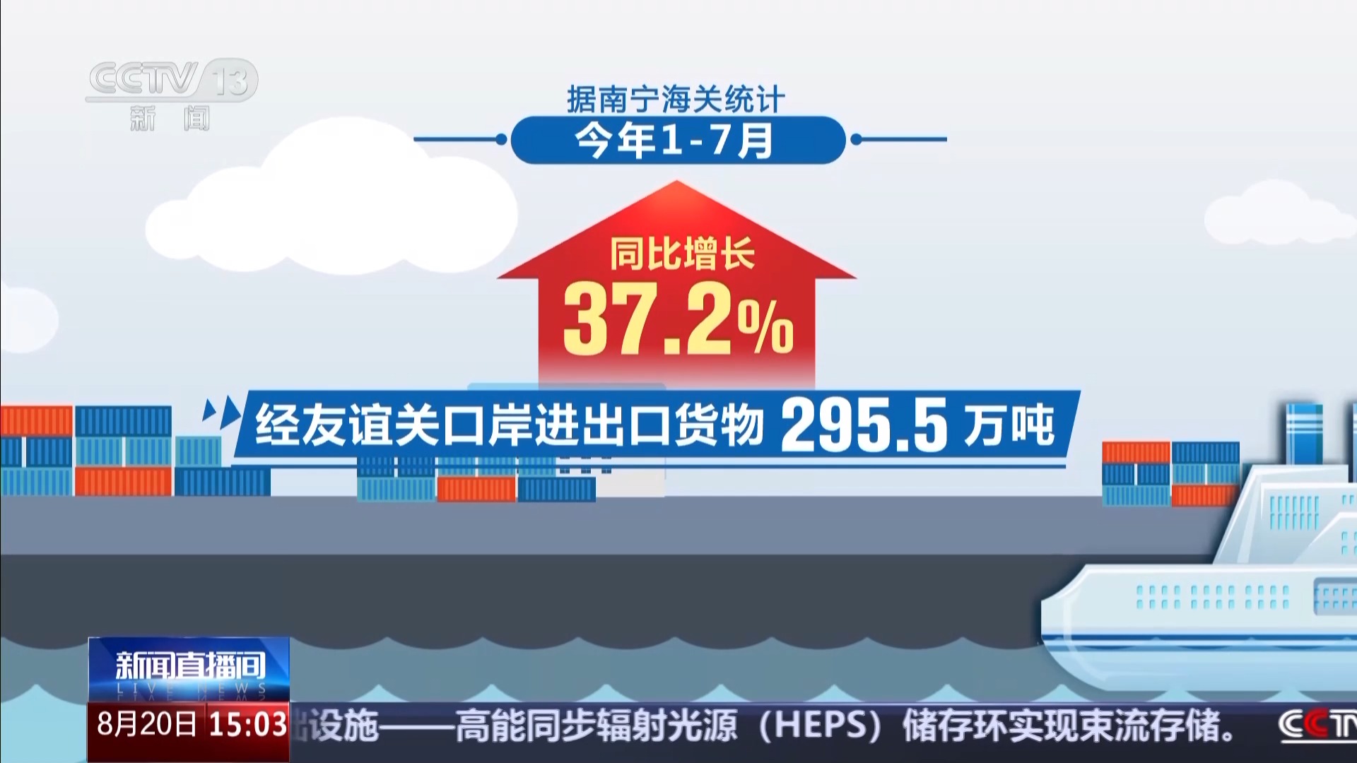 據(jù)南寧海關(guān)統(tǒng)計,1—7月,經(jīng)友誼關(guān)口岸進(jìn)出口貨物295.5萬噸,同比增長37.2%。其中對越南2128.5億元,同比增長28%。進(jìn)出境車輛27.3萬輛次,同比增長17.1%。